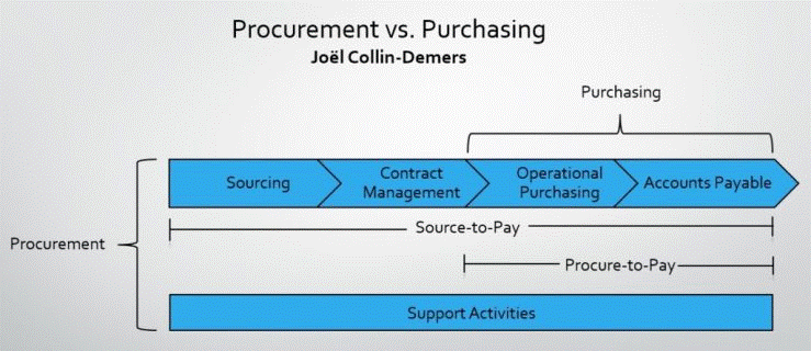 Слова “Purchasing” и “Procurement” на русский язык переводятся обычно одинаково, как “закупки” и исторически используются большинством как синонимы не только в русскоязычной среде, но и во всём мире. Хотя эти термины относятся к понятиям в одной и той же области, важно понимать нюансы между ними, когда “зацикливаешься” на функциональных обсуждениях. Для профессионалов различие достаточно важно, чтобы Институт закупок и поставок (CIPS) изменил обозначение в своей аббревиатуре с “Purchasing” на “Procurement” в 2014 году. Использование правильного термина в профессиональной среде становится всё более важным в связи с трансформациями многих отделов закупок, но, в каждой стране остается свое трактование.